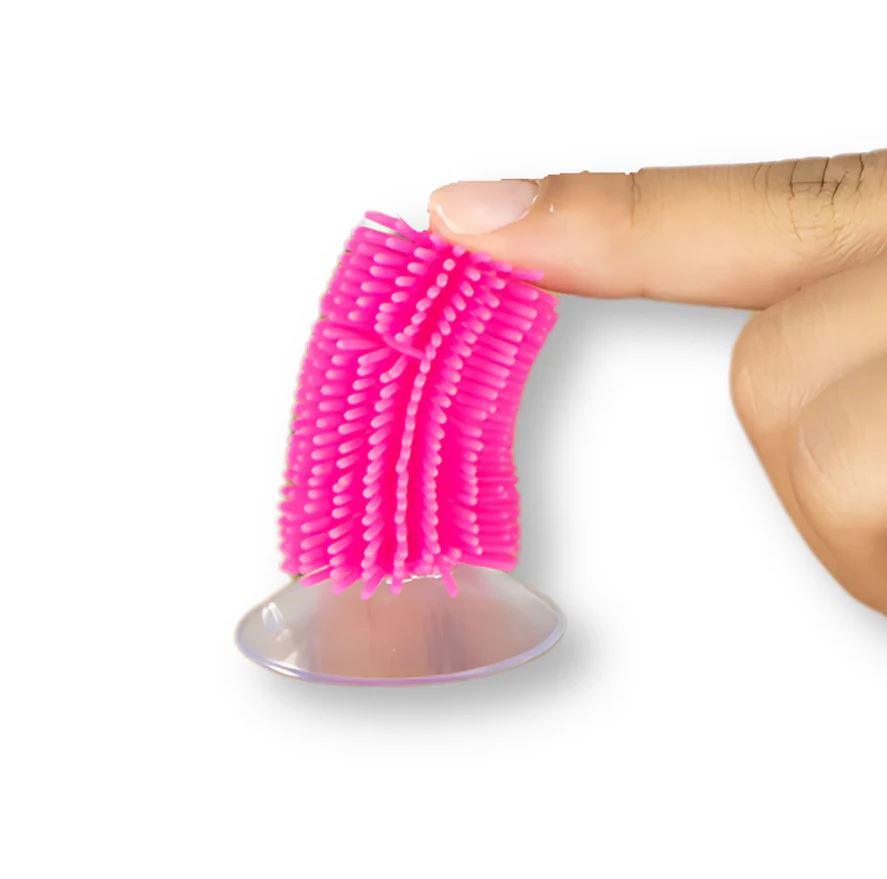 Fikt-staukurinn fylgir þér hvert sem er. Þú getur fest hann á skrifborðið, tölvuna eða stólarminn með sogskál... svo fremi að flöturinn sé sléttur. Fikt-staukurinn elskar að láta fikta í sér!